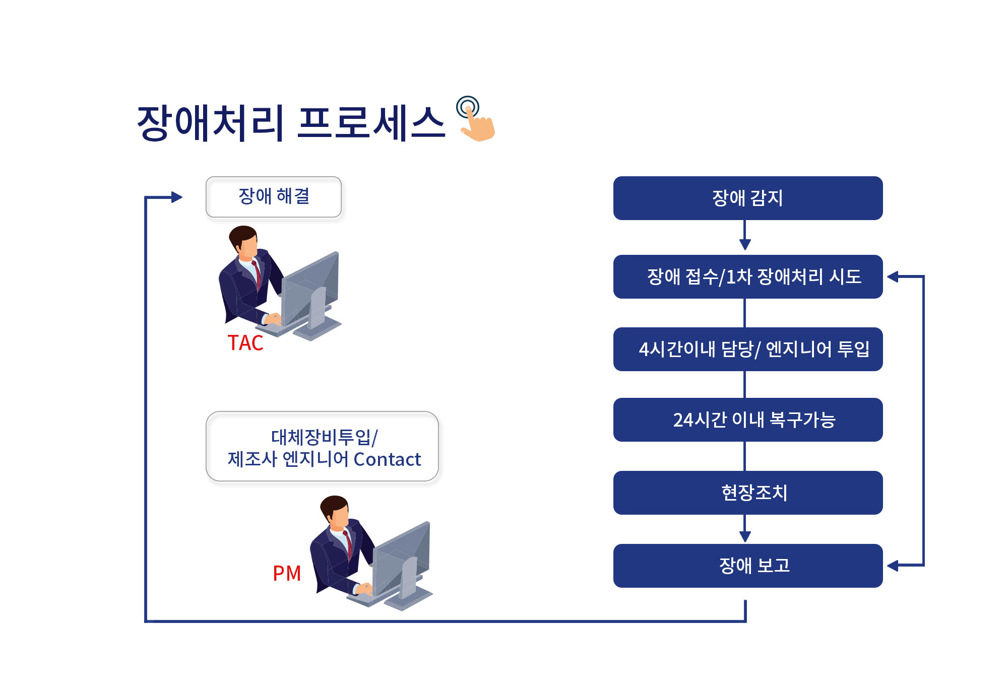 - - 장애 접수/현황 파악 - 1차 장애처리 시도 - 처리 불가시 담당 엔지니어 Contact